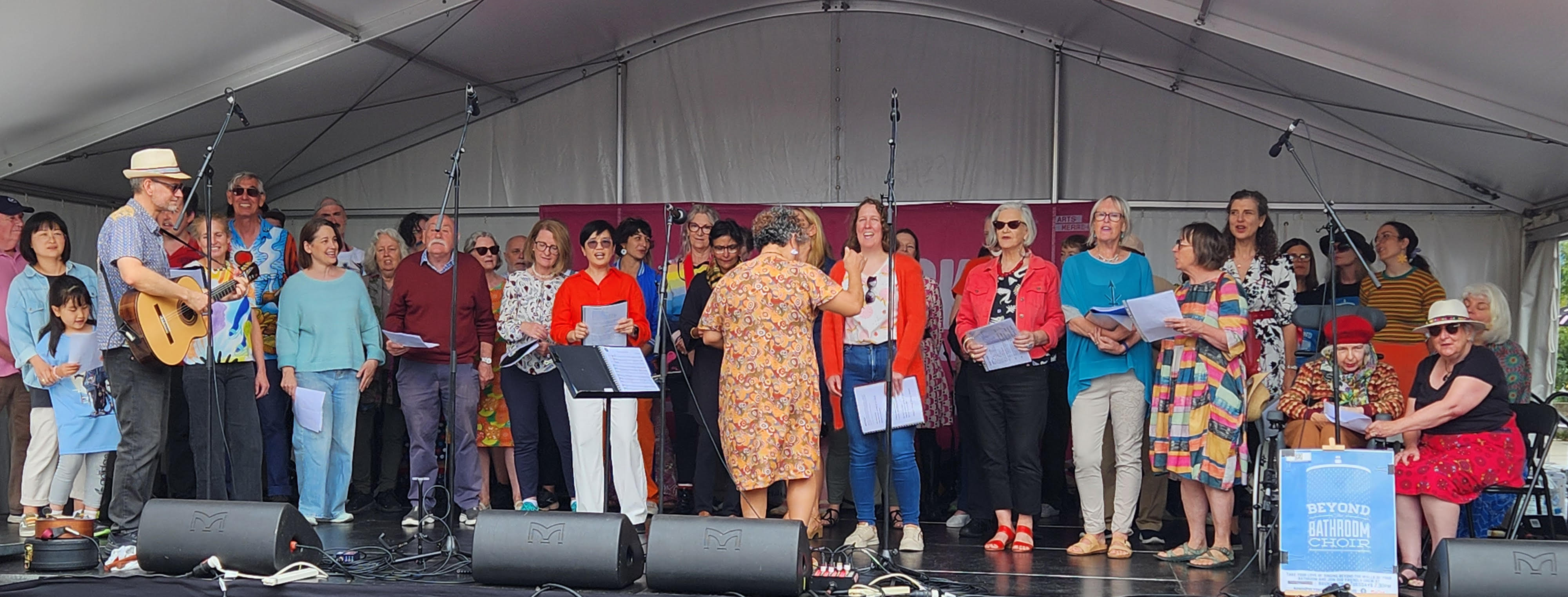 Occasionally we are invited to share our voices at an event or gig – participation in gigs is always optional – we understand that not everyone wants to perform and that is ok! The act of singing is exhilarating, healing and enough!